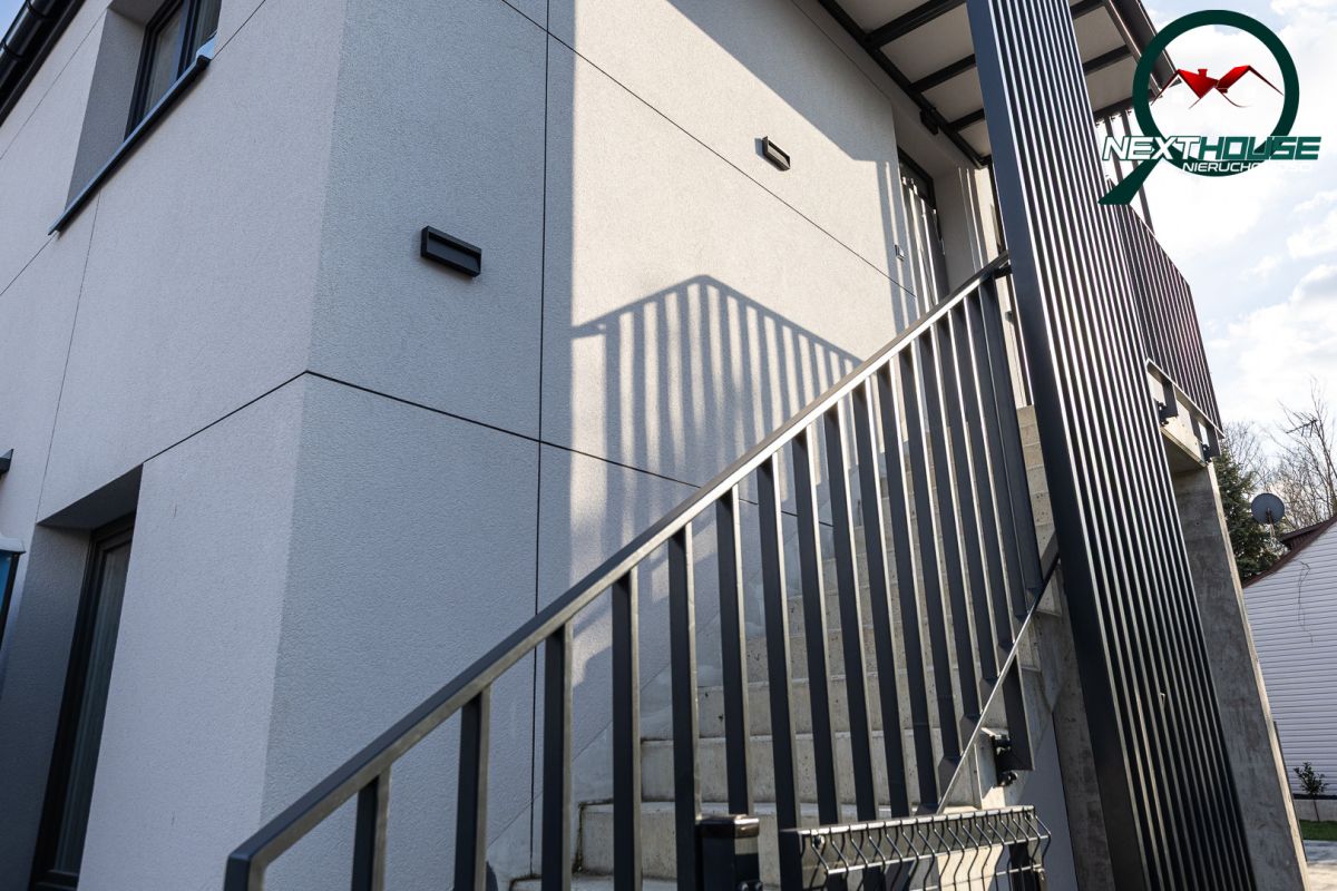Apartament: Budynek mieszkalny wielorodzinny położony na działce 690m2 wybudowany w technologii tradycyjnej z pustaka ceramicznego Winerberger dryfix, ocieplony styropianem grafitowym 20cm (0,31) z wyprawą systemową Baumit silikon, okna energooszczędne 3 komorowe z domykiem HST, drzwi antywłamaniowe firmy Gerda ( doświetlenie nad drzwiami), dach pokryty dachówka ceramiczną, instalacje wewnętrzne ( wod-kan, CO gazowa, elektryczna instalacja, rekuperacja mechaniczna, ogrzewanie podłogowe w całym apartamencie, instalacja klimatyzacji, piec gazowy dwufunkcyjny firmy Valliant niezależny na każde mieszkanie, światłowód), zagospodarowaniem terenu (chodniki, zasadzone tuje, zewnętrzne miejsca postojowe, brama przesuwana automatyczna aluminiowa z szybkimi napędami., ogrodzenie panelowe, prąd oraz woda doprowadzona na zewnątrz ogrodu). Podwójna płyta ogniowa na poddaszu. Budynek będzie miał elegancką formę zostanie wykończony wysokiej klasy materiałami ( kamień miko elewacja).