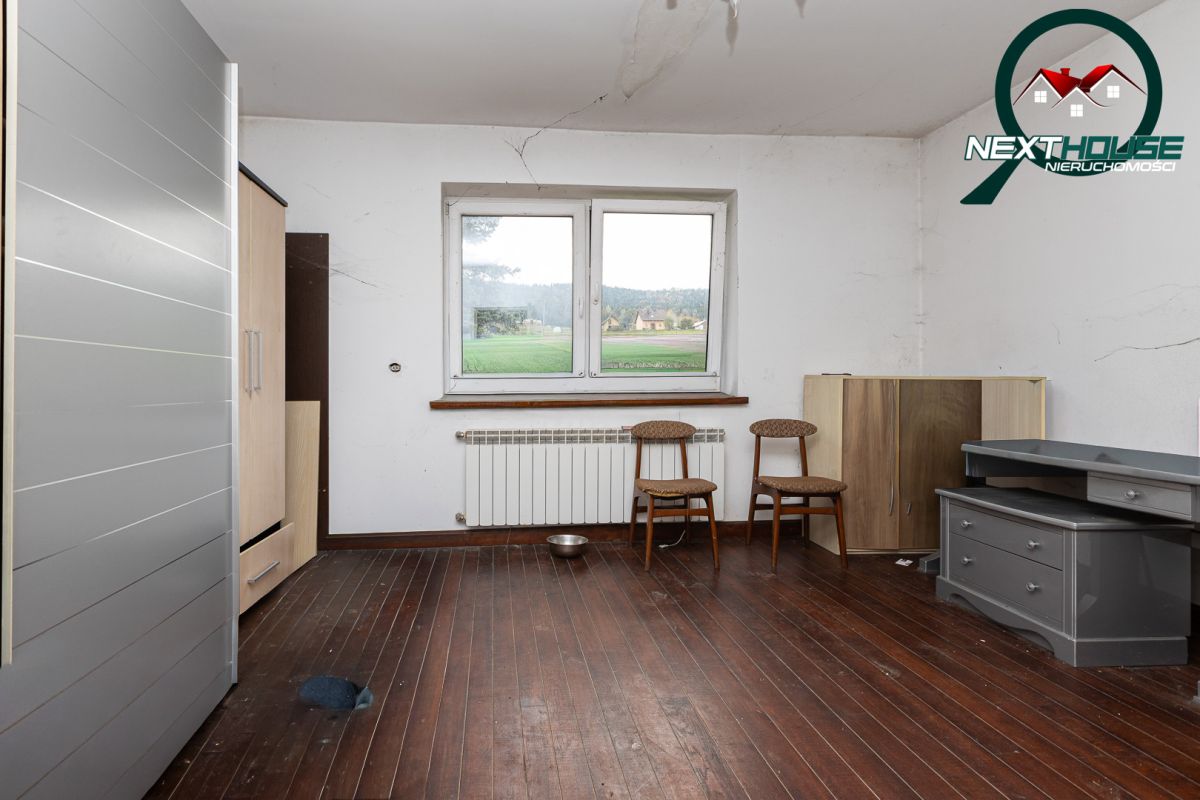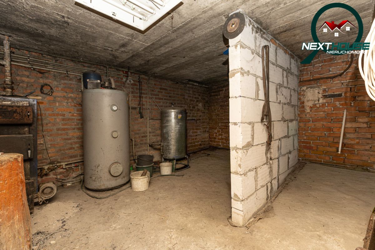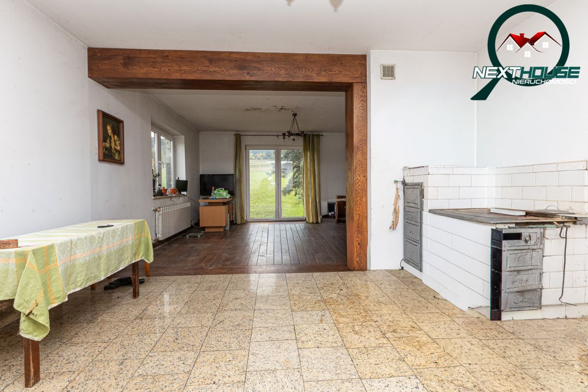 Dom o powierzchni o.k 130m2 użytkowa ale po podniesieniu ściany kolankowej możemy zwiększyć spokojnie do 160 m2 plus niski parter pod całym domem o wysokości 2m wybudowany w latach 60 tych w technologii tradycyjnej pustak, w budynku są nowe okna pcv oraz drzwi wejściowe. Dom ogrzewany piecem węglowym z możliwością adaptacji gazowego ponieważ skrzynka gazowa jest na działce. Budynek gospodarczy został generalnie odnowiony. Stodoła ma możliwości odnowienia ze względu na dobry stan wewnątrz oraz płyty fundamentowej.