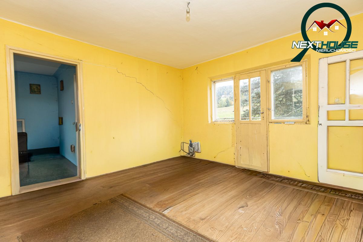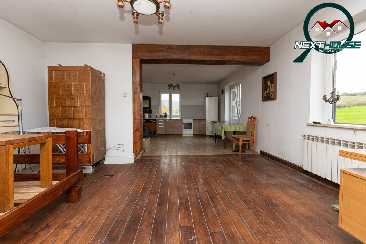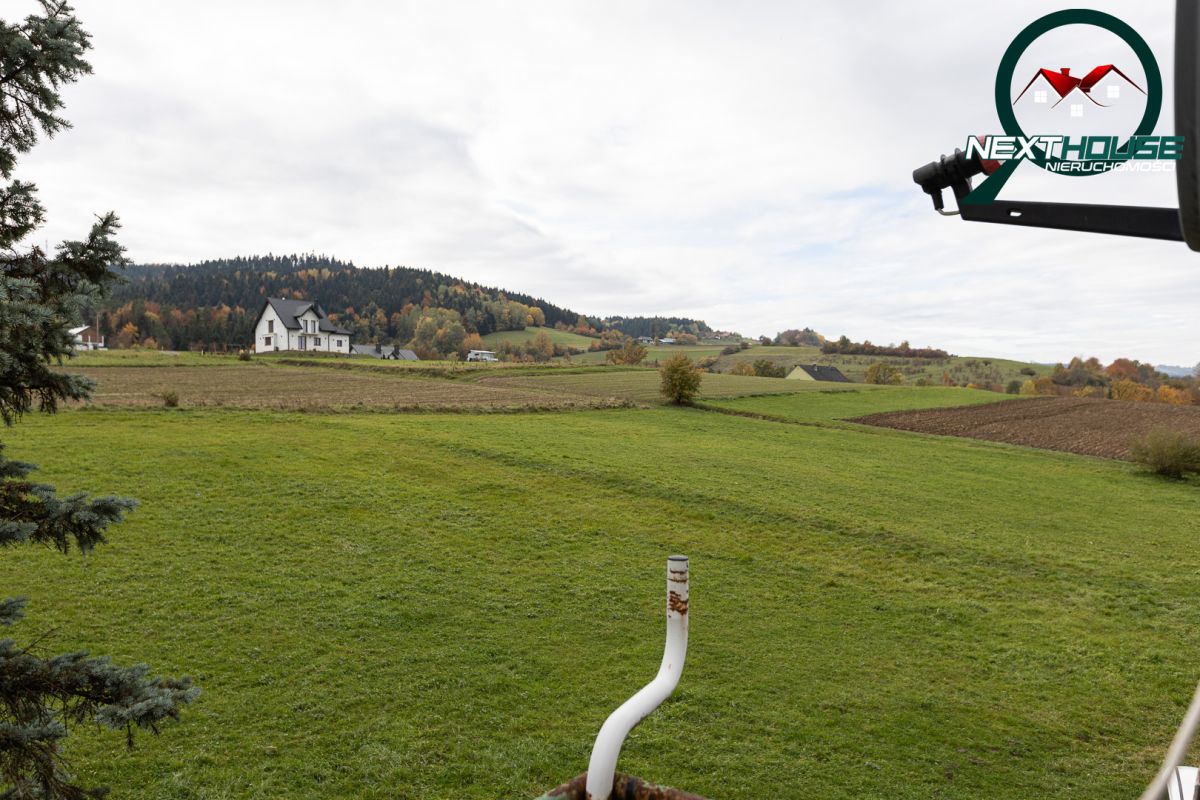 Dom: Położony na dużej działce 2.5ha w jednym kawałku w urokliwym miejscu na wzniesieniu z przepięknym widokiem na góry i dodatkowo w sąsiedztwie lasu.