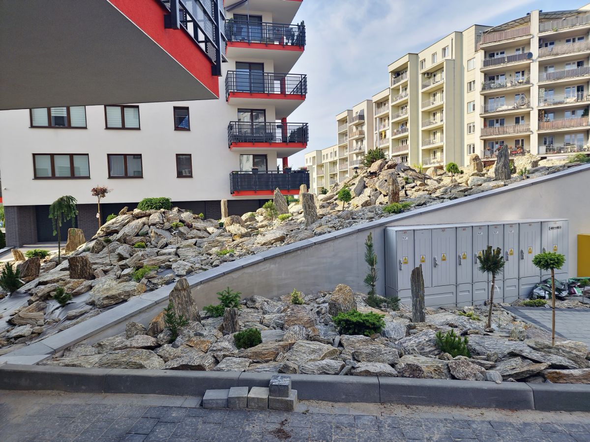 Apartament: Budynek mieszkalny wielorodzinny wybudowany w technologii żelbetonowej wraz z garażem podziemnym, instalacjami wewnętrznymi, zagospodarowaniem terenu (ciągami pieszymi, jezdnymi, zewnętrznymi miejscami postojowymi. Budynek posiada elegancką formę i stylistykę został wykończony wysokiej klasy materiałami, bardzo ładnie wykończona klatka schodowa z windą. Zaletą projektu budynku jest to że na każdym piętrze są funkcjonalnie rozplanowane mieszkania po 3 na stronę oddzielonymi dodatkowymi drzwiami klatkowymi po obydwu stronach co daje pewną prywatność.